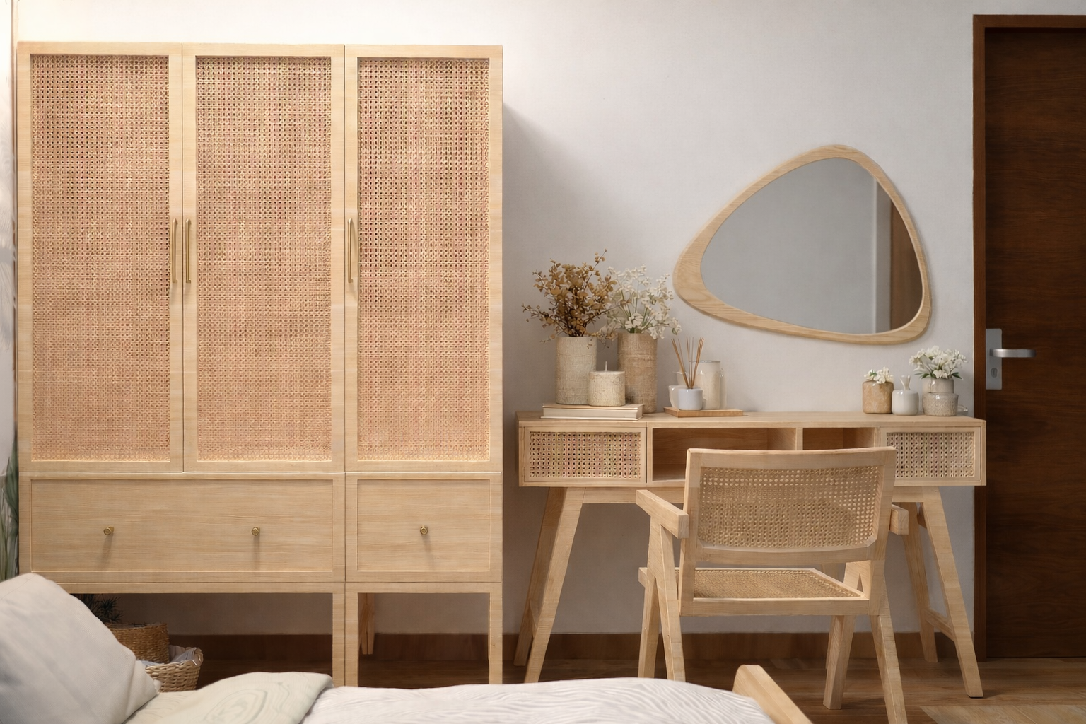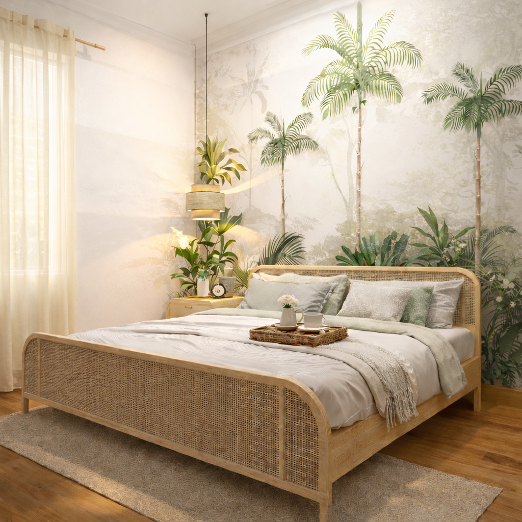 Natural boho-chic interiors with cane and wood accents